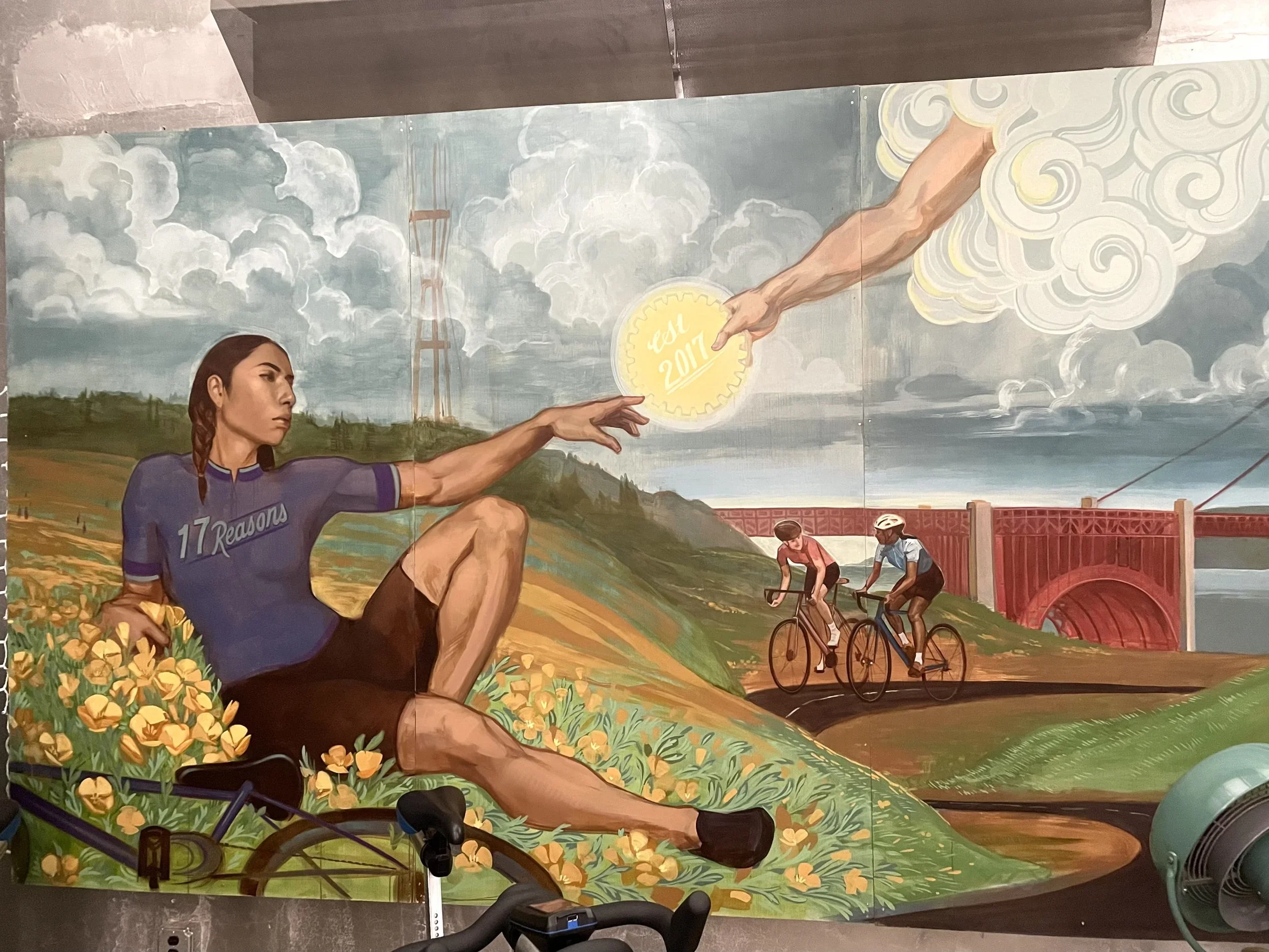 Bicycle theme mural at 17 Reasons Athletic Club, San Francisco, California 2022