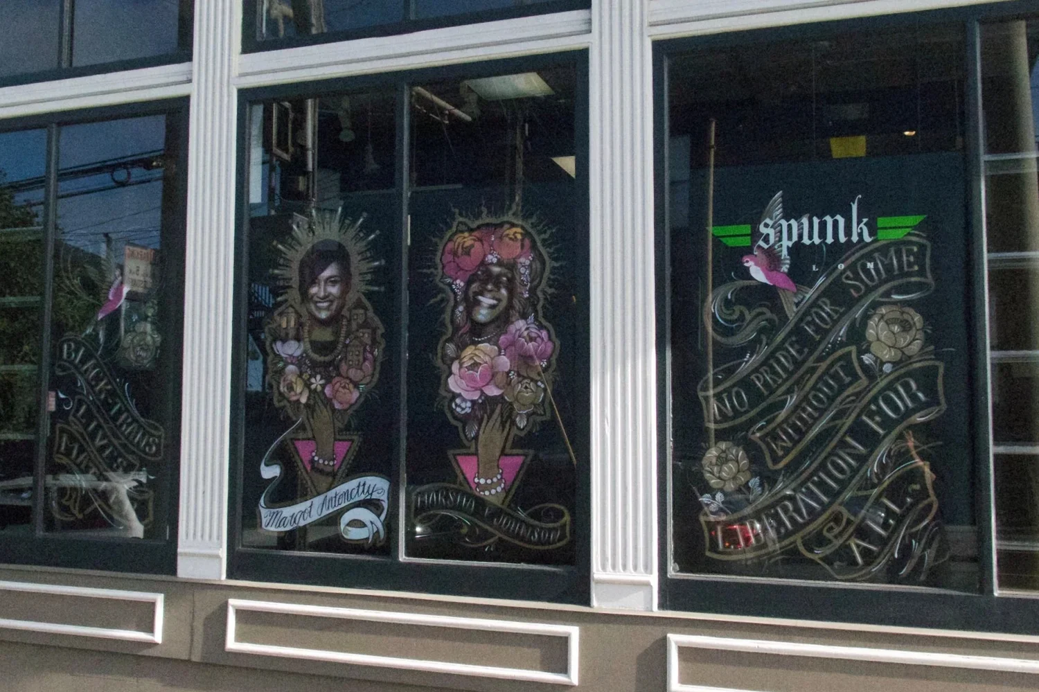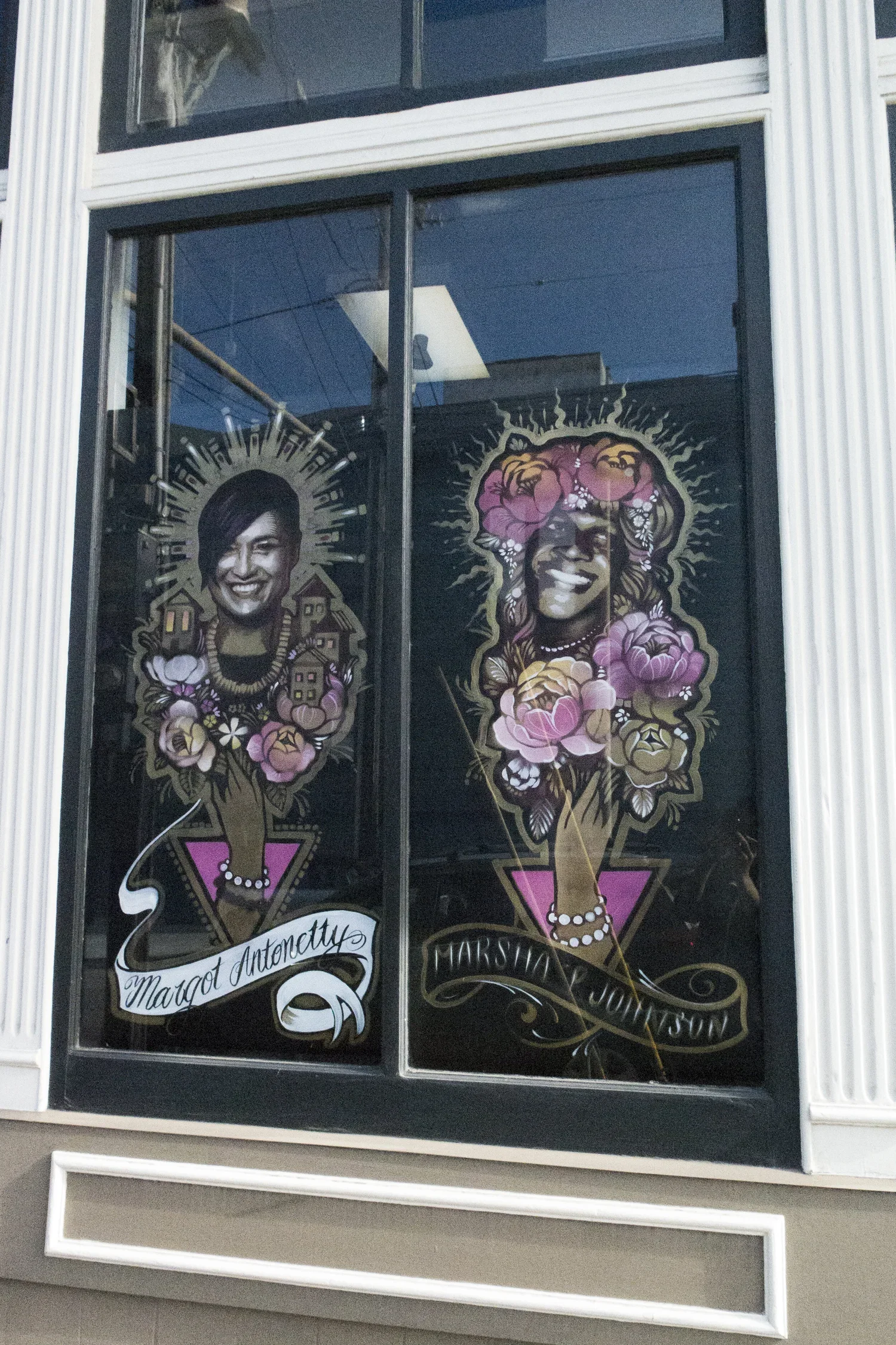 Window Panels honoring Marsha p Johnson, gay liberation activist and outspoken advocate for gay rights, as well as one of the prominent figures in the Stonewall uprising of 1969, and Margot Antonetty, who helped create the Direct Access to Housing division of the Department of Public Health, one of the nation’s foremost housing programs for chronically homeless people, as well as the housing nonprofit Delivering Innovations in Supported Housing (DISH). 2020