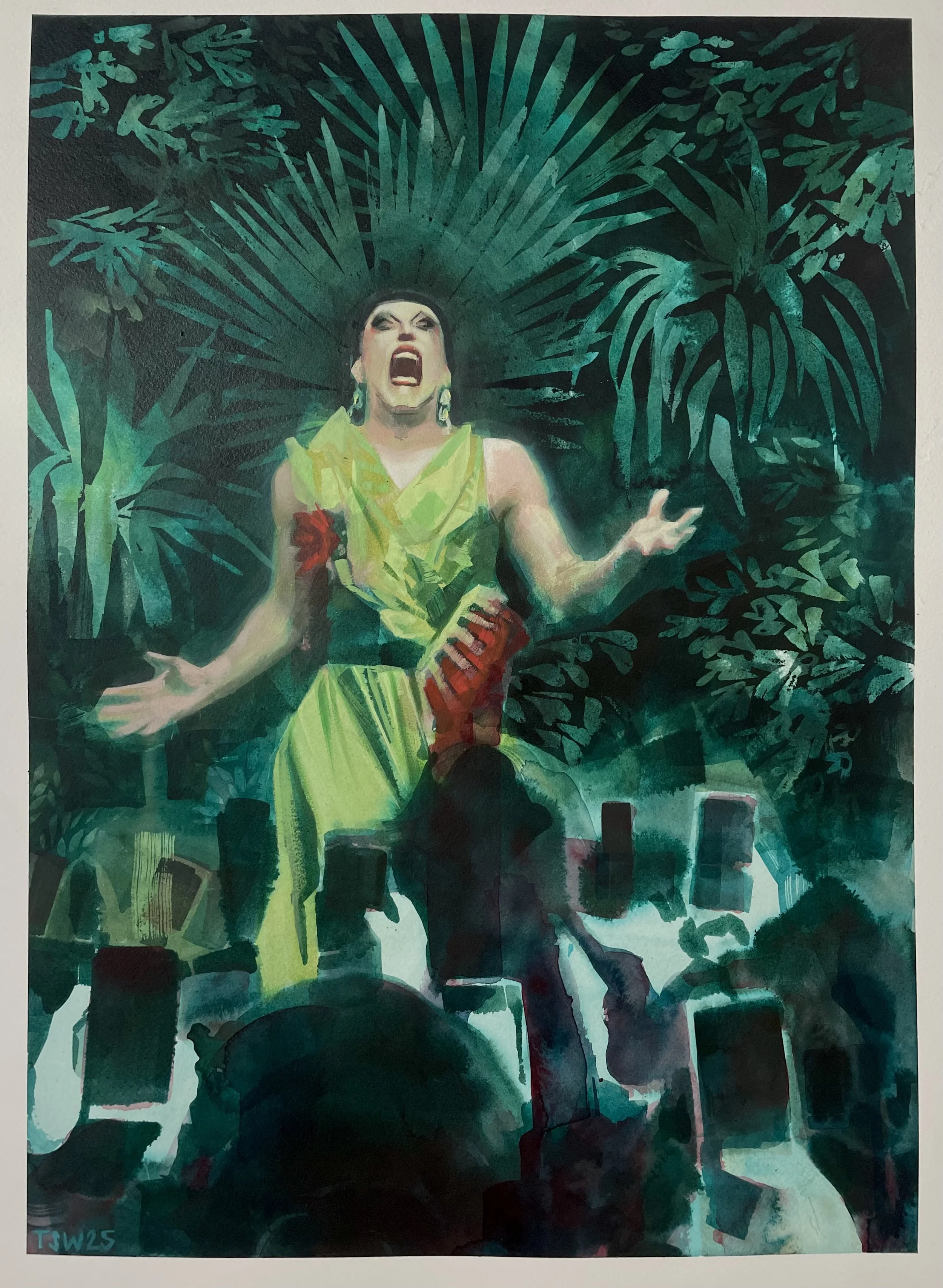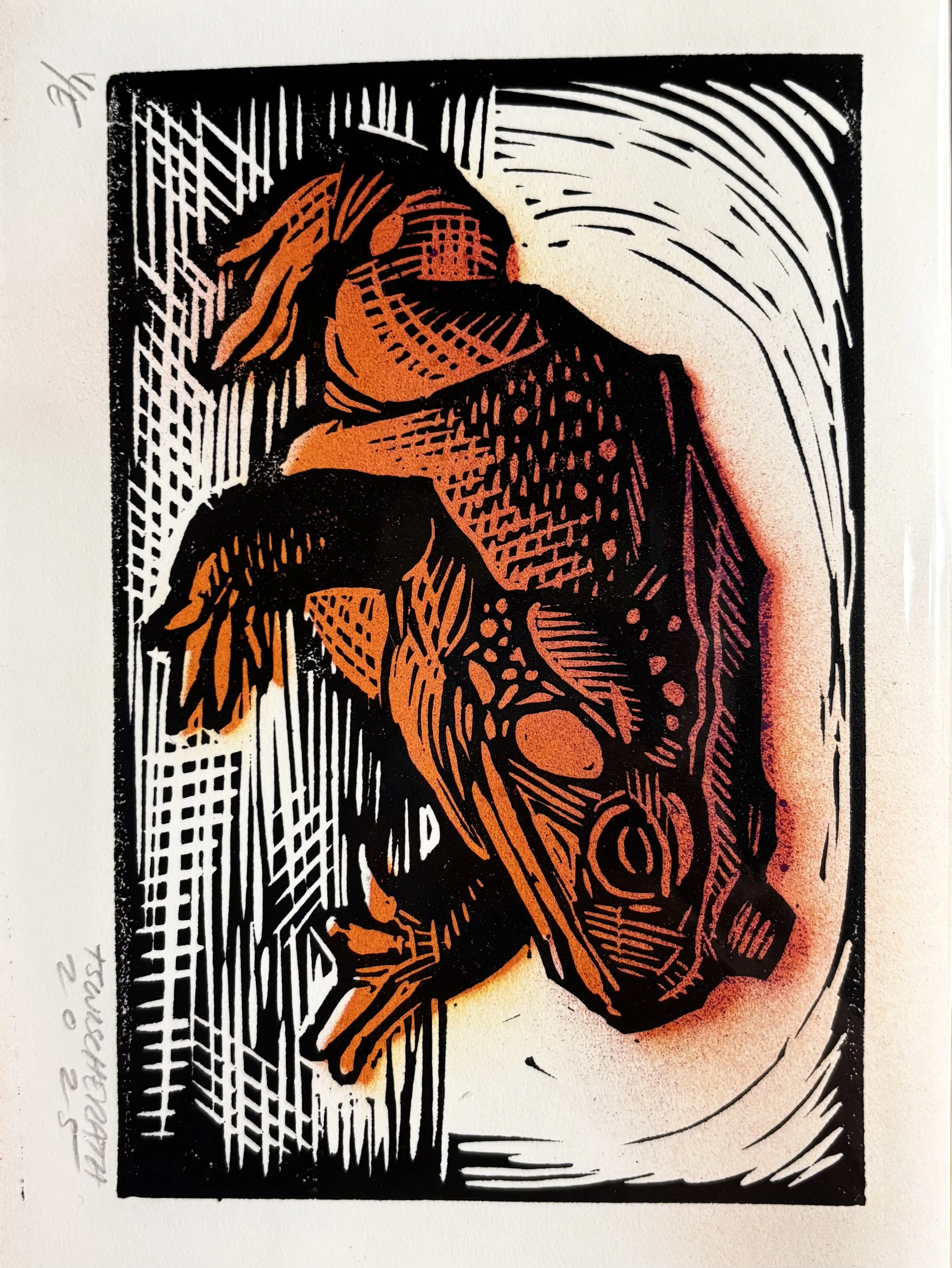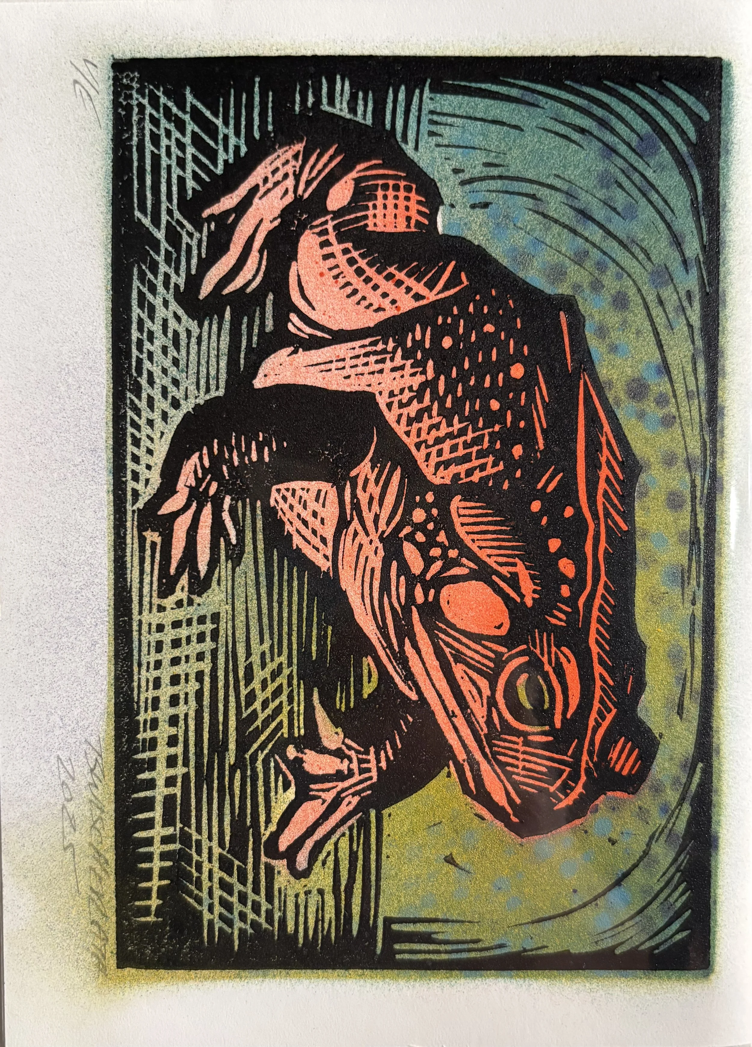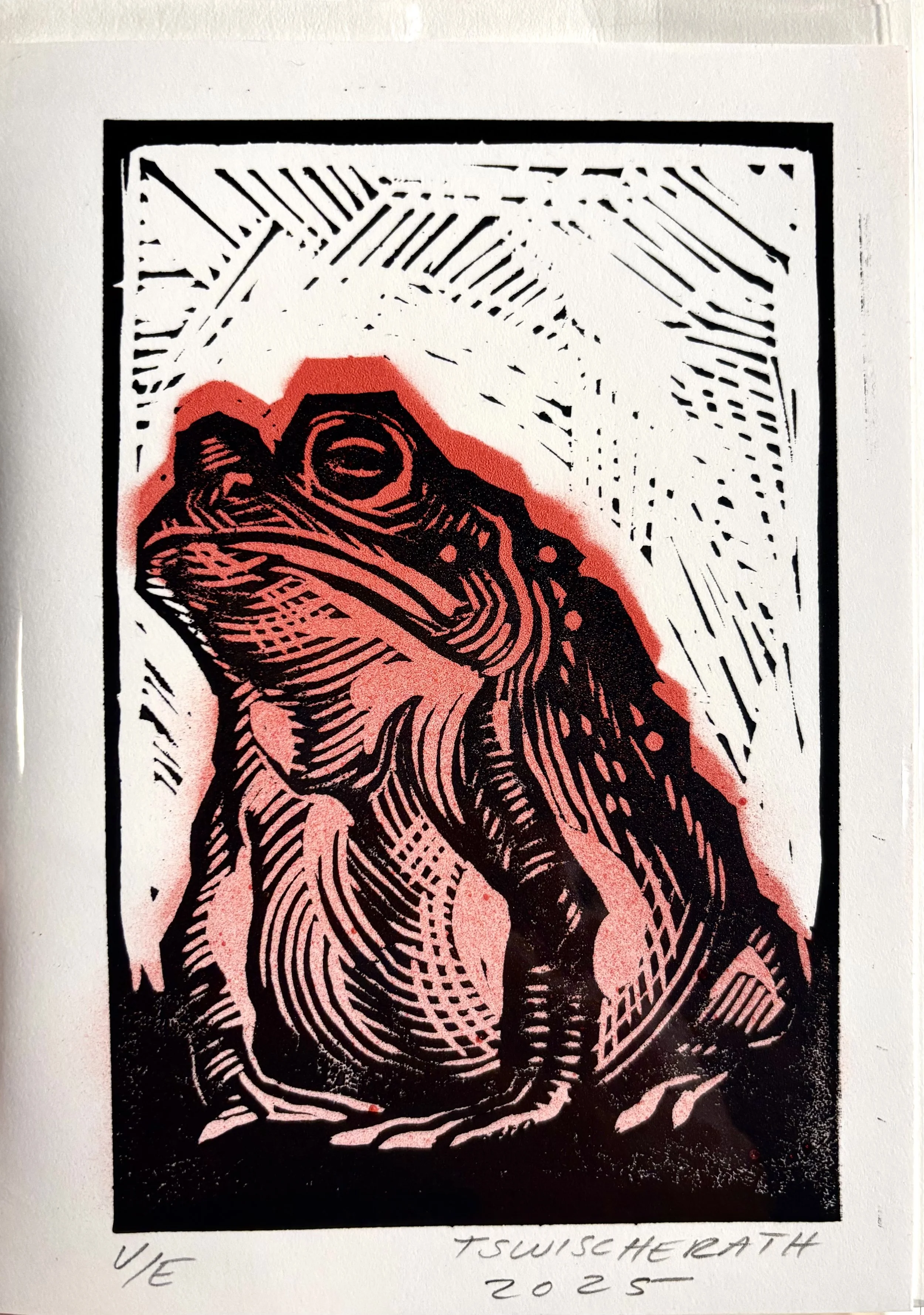 Painting- “The Fruiting Season” $2,800.00 Painting- “ The Horrors” $800.00 Daddy Toad Print $12.00 Grand Toad Card. $12.00 “So Hoppy With You” Print $12.00